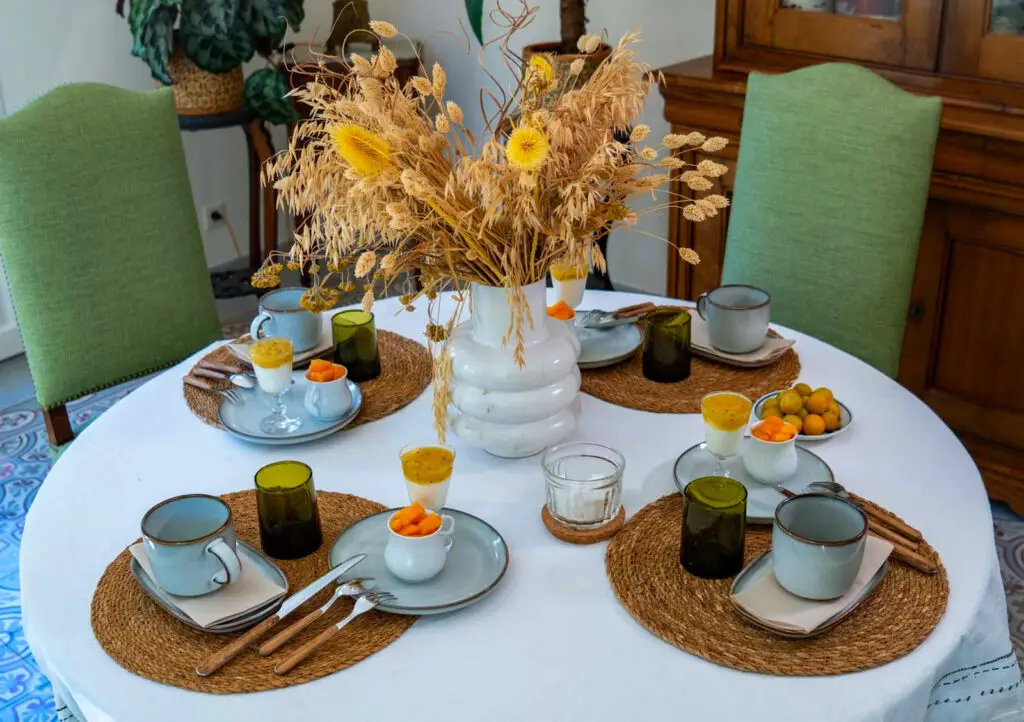 Une autre pièce destinée au petit déjeuner est également disponible, l’accès se fait en traversant une cuisine pleine du charme des cuisines d’antan. Plus petite, elle offre une ambiance chaleureuse et cosy avec vue sur le jardin et donnant sur la terrasse.